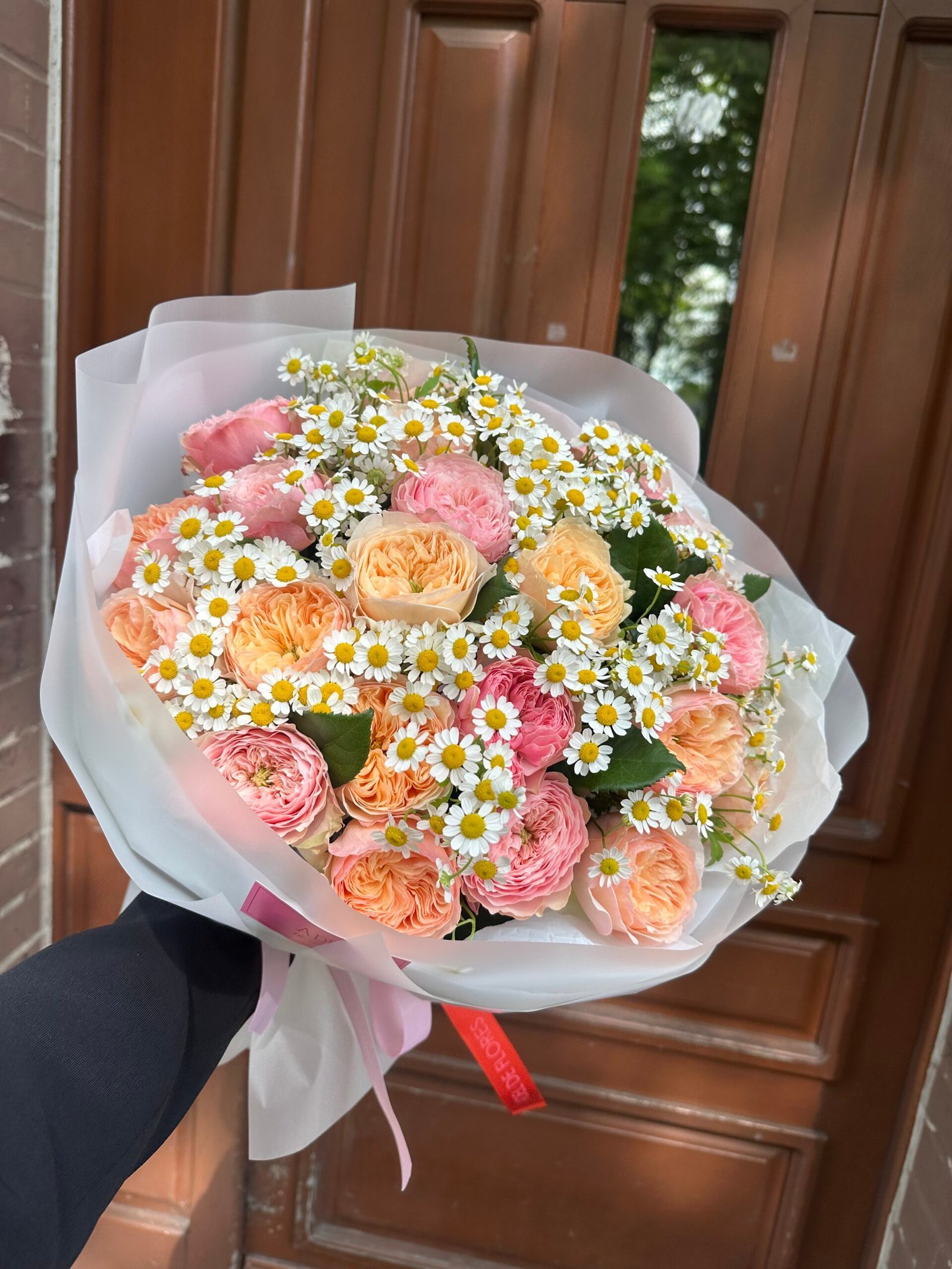 Bukiet z gałązkowych róż i rumianku