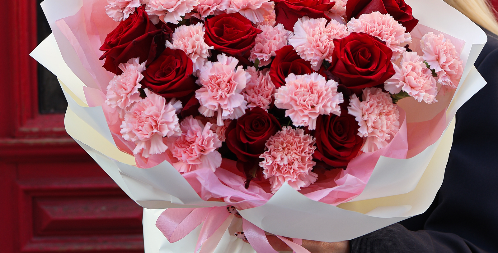 Bukiet z hortensjami, goździkami i różami