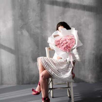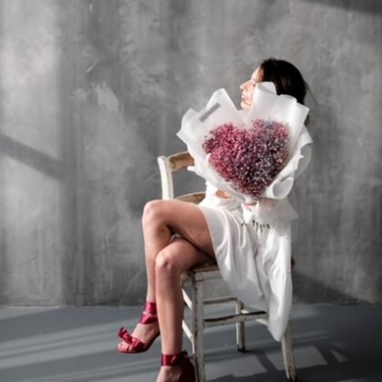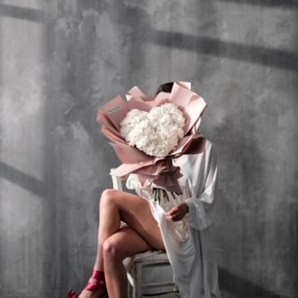 Bukiet z 51 czerwonych róż w beżowym opakowaniu