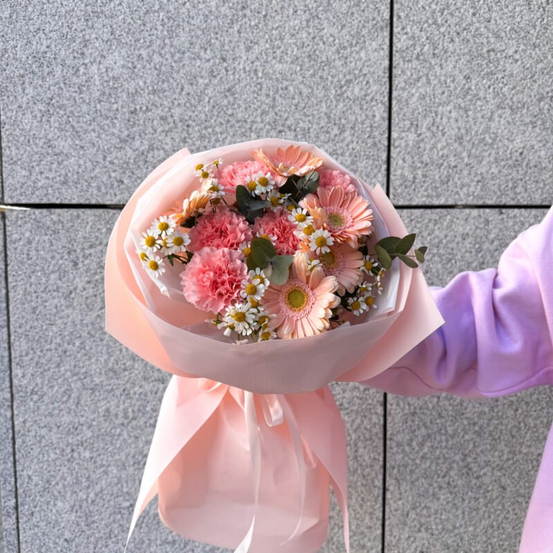 Monobukiet z róż piwoniowych i rumianku
