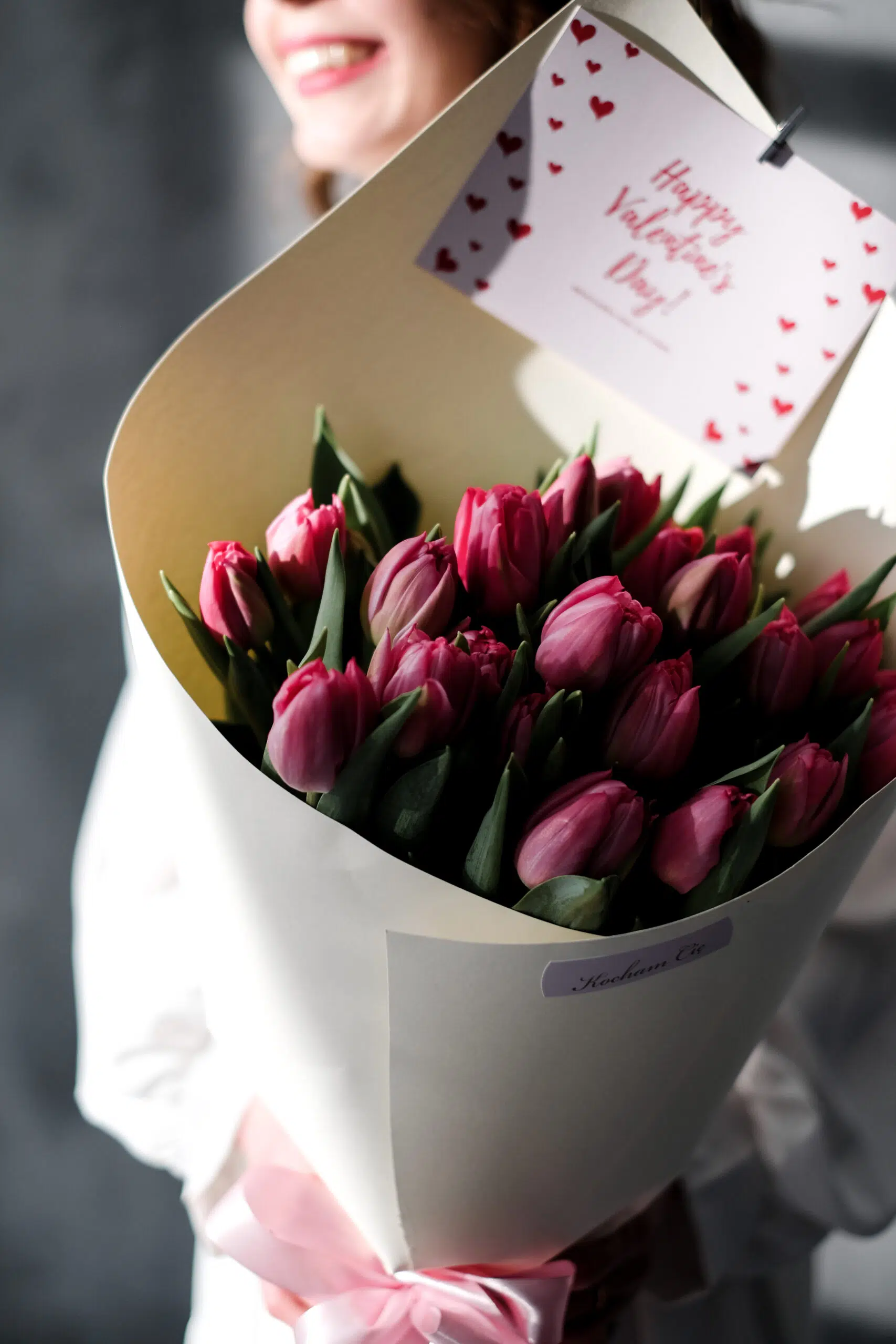 Subtelny i elegancki bukiet złożony z 25 świeżych różowych tulipanów, zachwycających delikatnym odcieniem różu i klasyczną formą. Kompozycja utrzymana w romantycznym, a jednocześnie nowoczesnym stylu, idealna na Walentynki, urodziny, Dzień Kobiet lub jako piękny gest bez okazji. Całość dopełnia estetyczne opakowanie, które może się różnić w zależności od dostępności, zawsze jednak podkreślając naturalne piękno kwiatów.