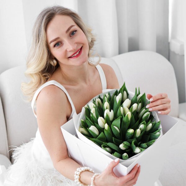 Delikatne, różowe tulipany, symbol wiosennego przebudzenia i subtelnych uczuć, układają się w bukiet pełen wdzięku i elegancji. Ich miękkie płatki i pastelowa kolorystyka tworzą kompozycję, która zachwyca swoją lekkością i ponadczasowym pięknem. To kwiatowa opowieść o delikatnych emocjach i pięknie ukrytym w prostocie.