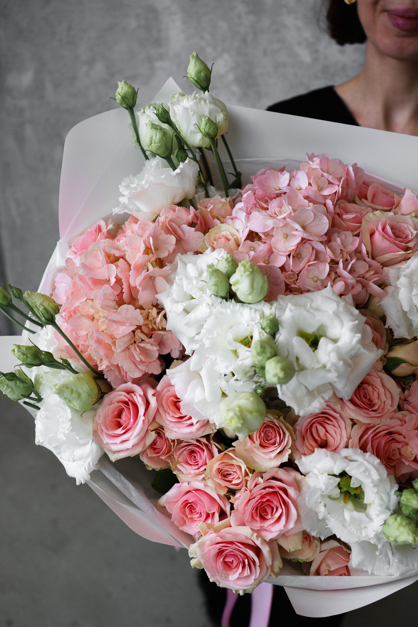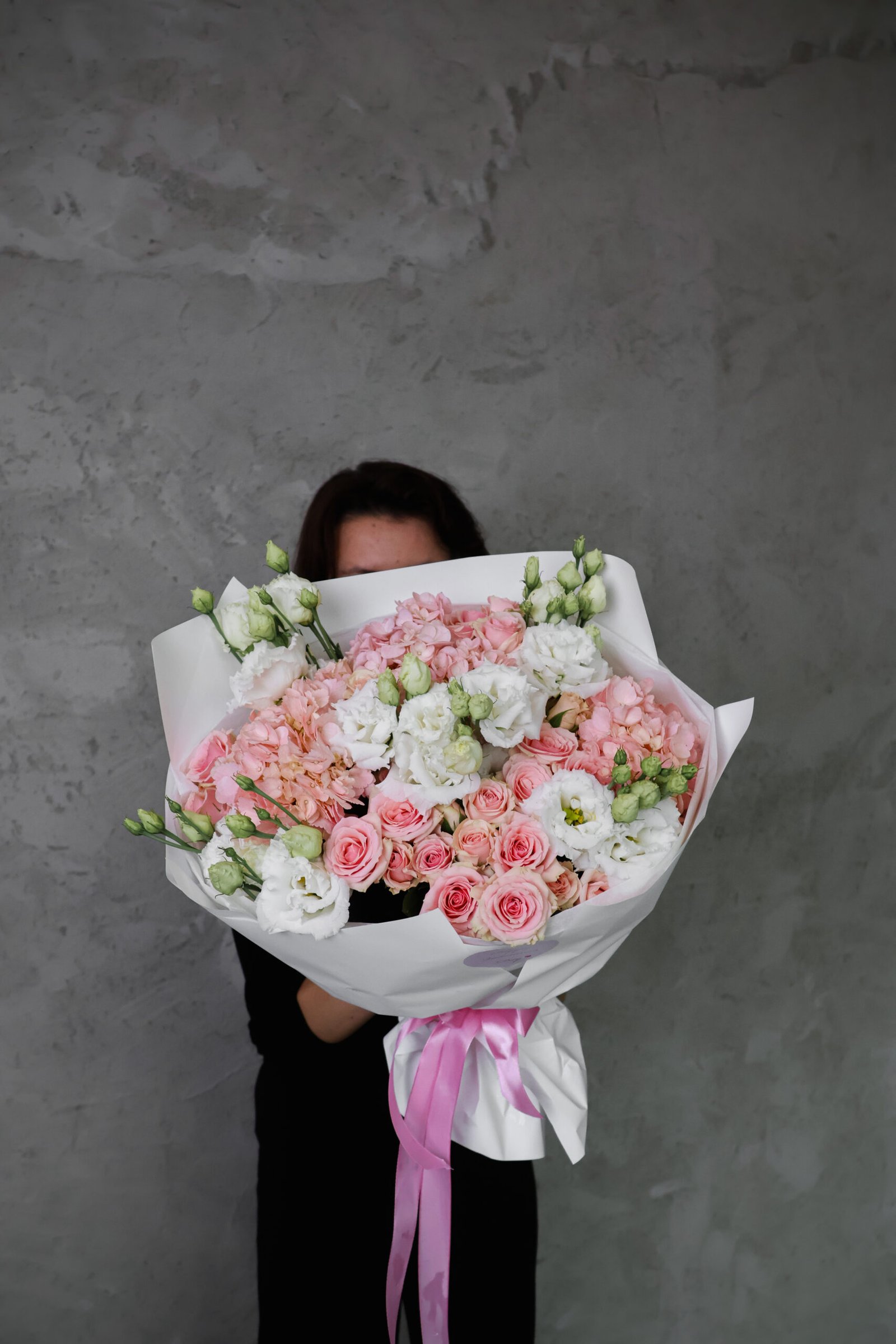 Delikatna, jasna kompozycja utrzymana w pastelowej palecie różu i bieli. Miękkie odcienie kwiatów tworzą harmonijną, bardzo elegancką całość o romantycznym i świeżym charakterze. Lekkość formy podkreśla nowoczesne, jasne opakowanie oraz subtelna różowa wstążka. Bukiet idealnie sprawdzi się jako prezent na urodziny, rocznicę, baby shower lub jako wyrafinowany gest pełen czułości.
