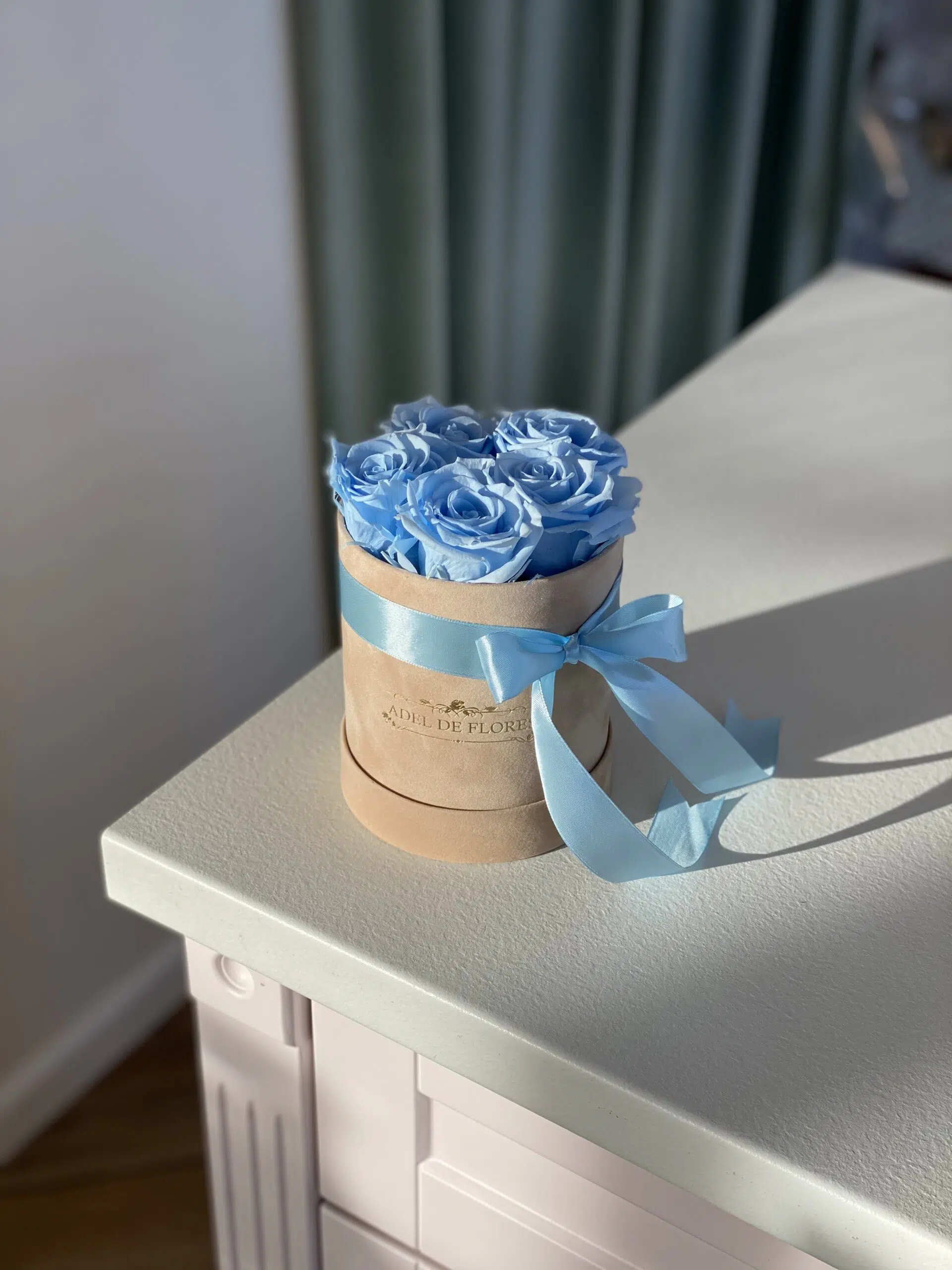 ilość Niebieskie wieczne róże w beżowym pudełku