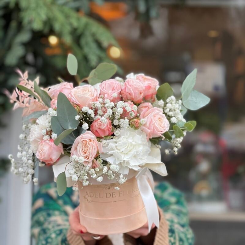 Kwiaty umieszczone są w średnim pudełku. W środku pudełka umieszczona jest gąbka florystyczna, nasączona wodą i odzywką, która sprawia że kwiaty zachowują świeżość tak samo jak w wazonie.