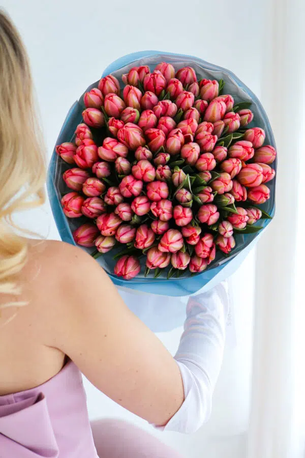 Każdy bukiet dostarczany jest w aquaboxie, który zapewnia kwiatom odpowiednie nawodnienie, oraz w eleganckiej torbie transportowej, gwarantującej bezpieczny i estetyczny transport.