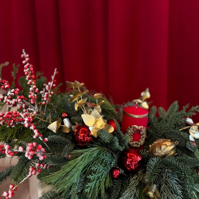 Duża bożonarodzeniowa kompozycja w czerwo -złotej kolorystyce